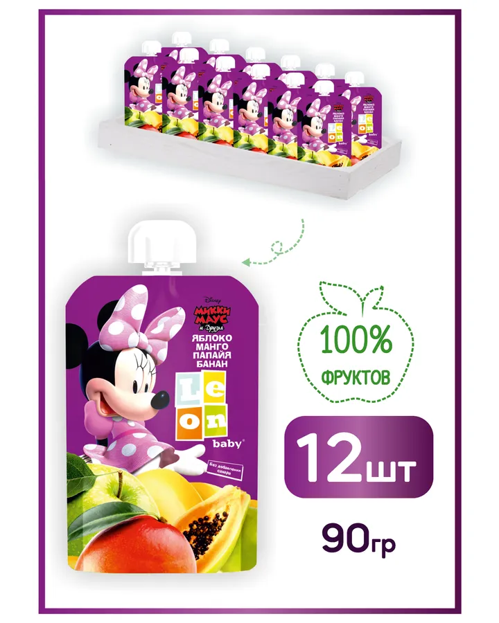 Пюре LEON baby Яблоко-манго-папайя-банан с 8 мес 90 г