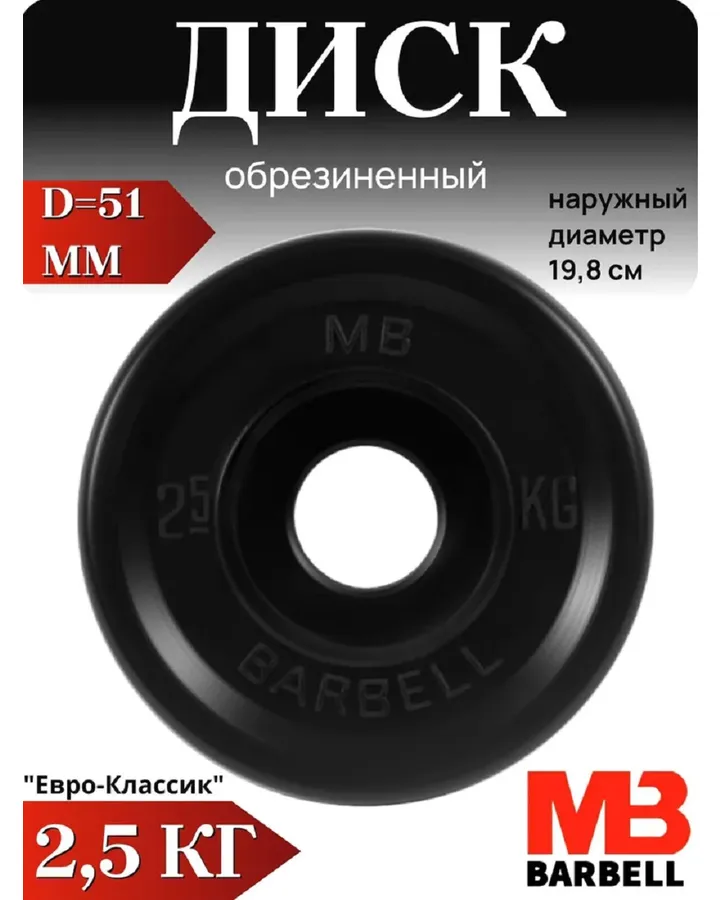 D 31 мм чёрный 2,5 кг MbBarbell Диск обрезиненный