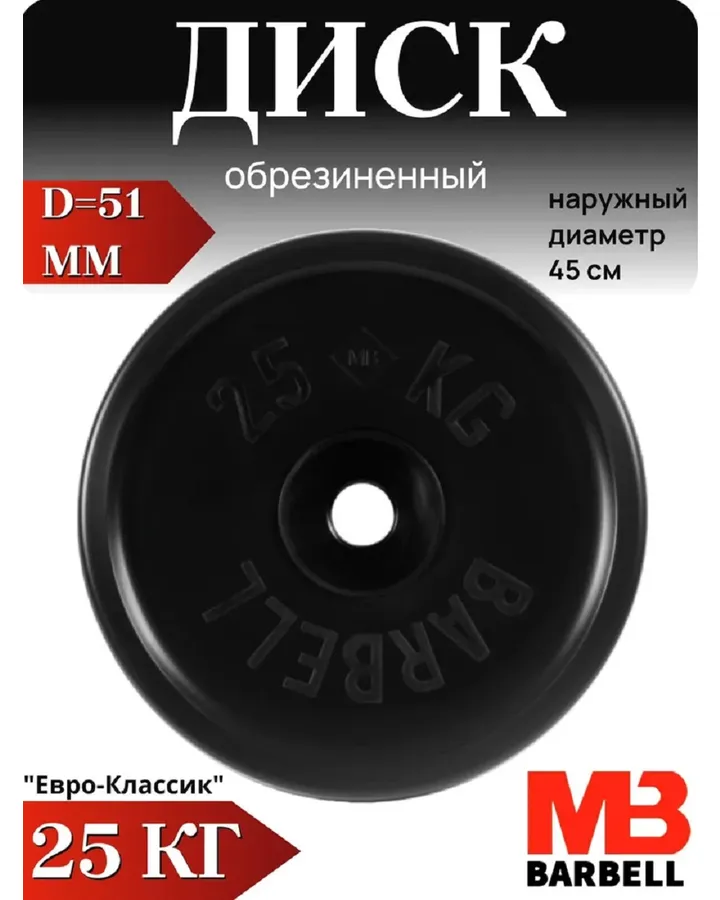 D 31 мм чёрный 25,0 кг MbBarbell Диск обрезиненный