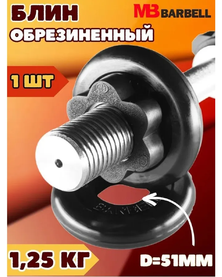 D 51 мм чёрный 1,25 кг MbBarbell Диск обрезиненный