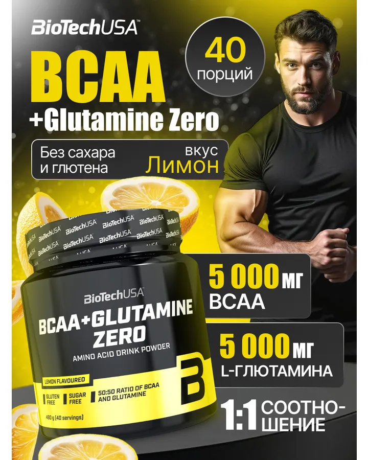 БЦАА BiotechUSA BCAA+Glutamine Zero 480 г. Лимон
