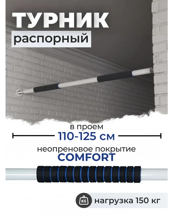 Турник распорный BORABO comfort - неопреновое покрытие, в проем 110-125 см