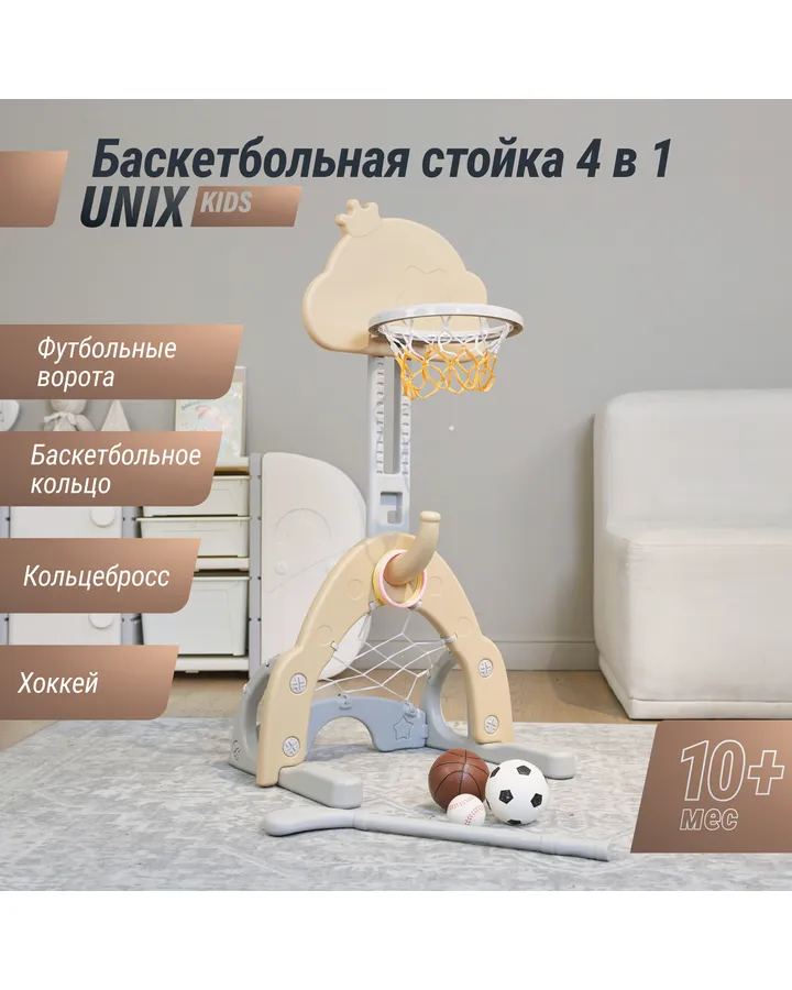 5Баскетбольная стойка детская UNIX Kids Space grey 3 в 1 с хоккейными и футбольными воротами для дома и улицыСтоит своих денег