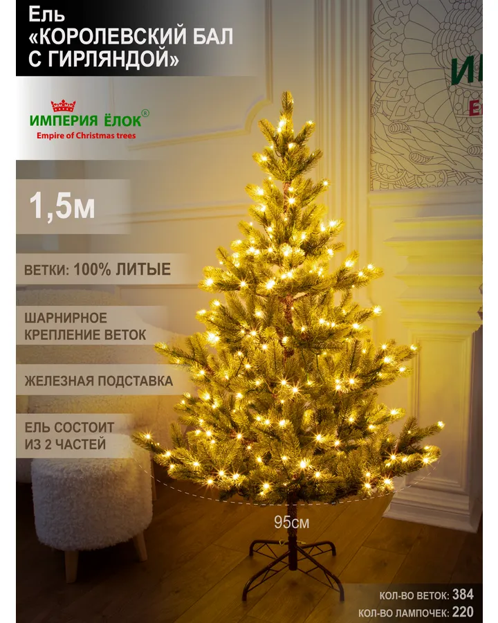 Ель Королевский бал с гирляндой Империя Ёлок 150 см