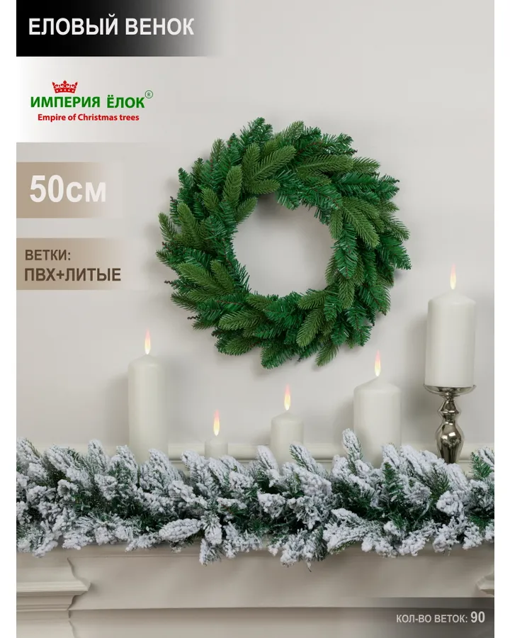 Венок новогодний еловый, заснеженный Империя Ёлок 50 см