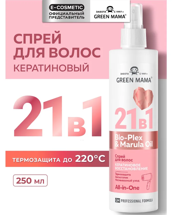 Спрей-реконструктор для волос Green Mama 21 в 1 восстанавливающий несмываемый 250 мл