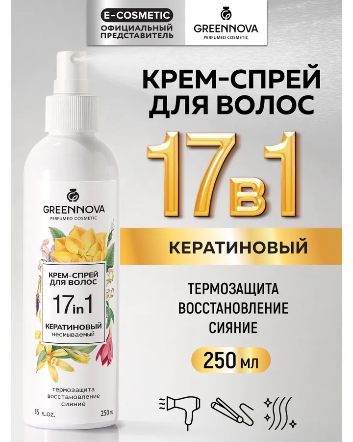 5Крем-спрей для волос GREENNOVA многофункциональный 17 в 1 несмываемый 250 мл - 2 штПриятный запах, волосы становятся мягкие!!!