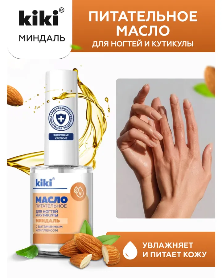 Масло для ногтей и кутикулы KIKI с миндальным маслом и витаминным комплексом