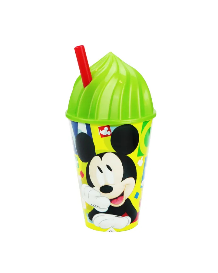 Стакан пластиковый STOR с соломинкой и объемной крышкой в виде мороженного 430мл Микки Маус Акварель