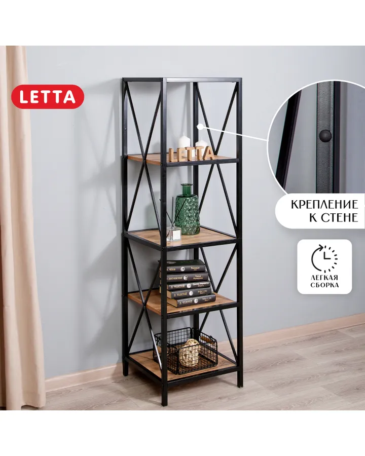 Стеллаж тумба этажерка LETTA Этажерка Trust Дуб Вотан Черный металл 900х780х300