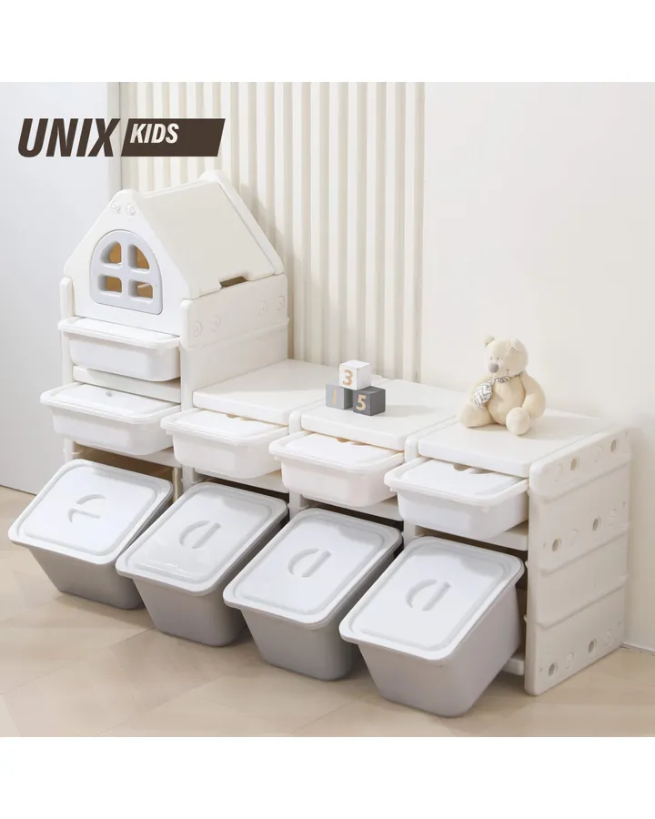 Стеллаж для игрушек UNIX Kids 6 ящиковУдобный. Для годовалого малыша вполне вместительный. Пластик качественный. Не пахнет.