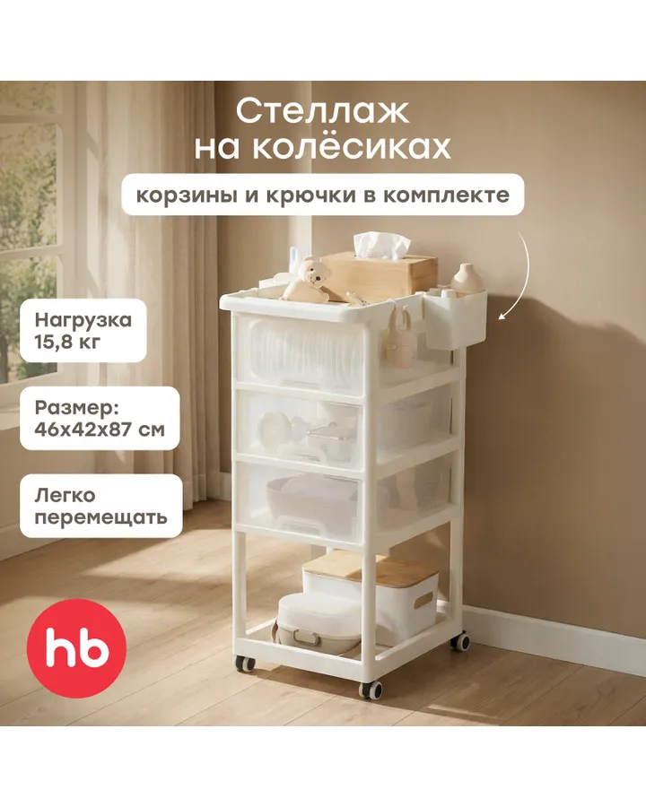 Стеллаж Happy Baby СтеллажОчень классная этажерка! Боялась будет выглядеть дешево, но пластик хорошего качества👌отлично вписалась в интерьер Очень простая в сборке, единственное, нужно помучаться немного с ящиками А так нормально, справилась самостоятельно Неприятного запаха нет Вместительная 👍🏼