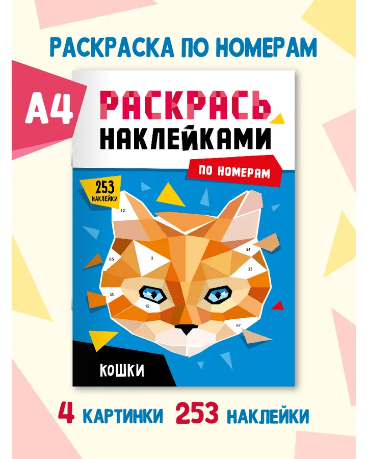 Раскраска Проф-Пресс наклейками по номерам 8 листов А4. Кошки