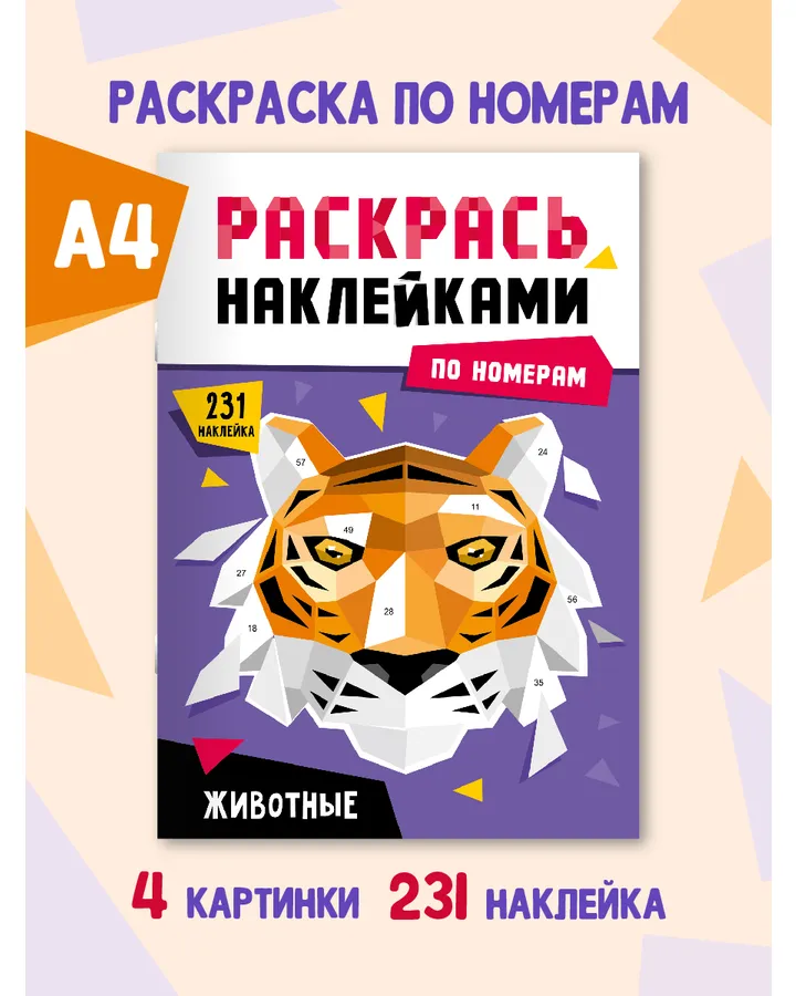 Раскраска Проф-Пресс наклейками по номерам 8 листов А4. Животные