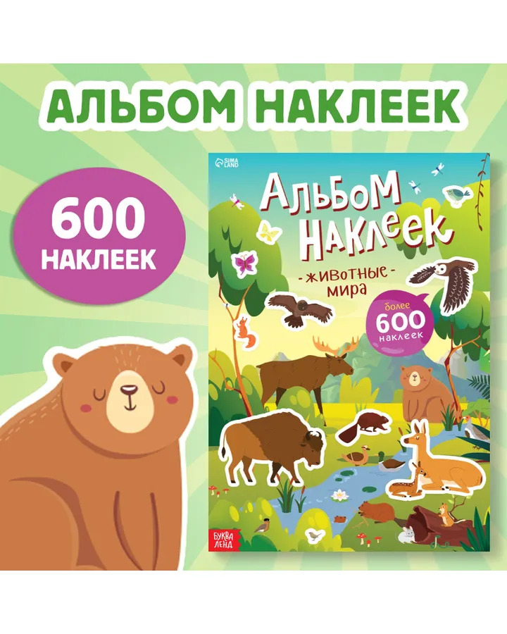 Альбом наклеек Буква-ленд Животные мира 600 наклеек