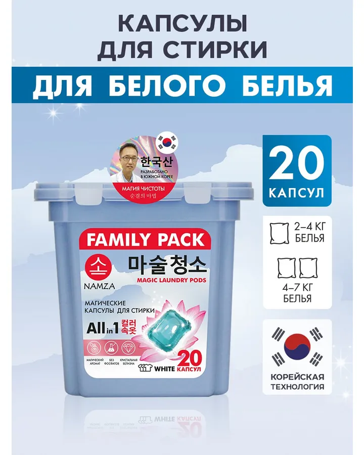 Капсулы для стирки NAMZA Белое 0.16 кг 20 шт.