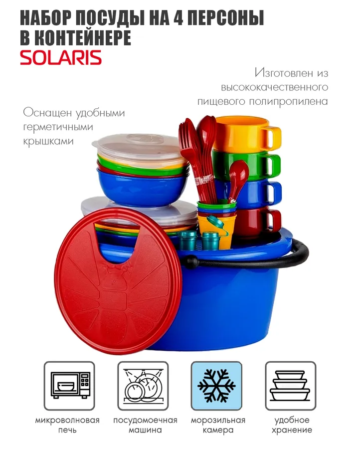 Набор посуды Solaris на 4 персоны в контейнере