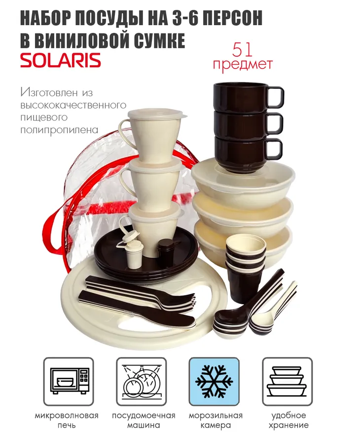 Набор посуды Solaris на 6 персоны в контейнере ванильно-шоколадный
