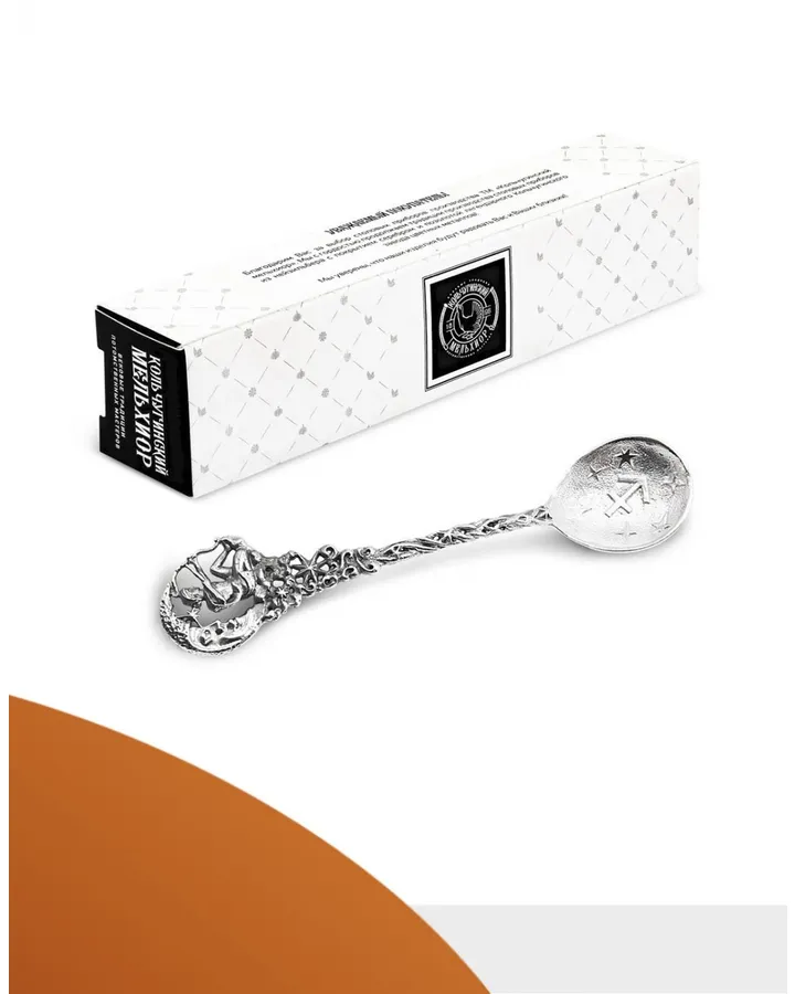 Ложка чайная Кольчугинский мельхиор Зодиак-Скорпион латунь посеребренная с чернением