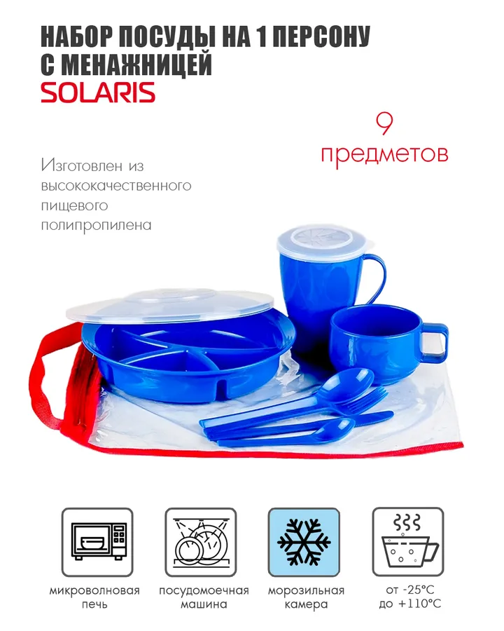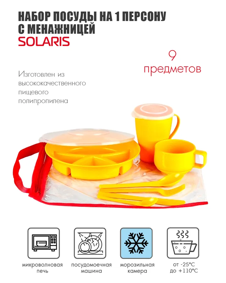 Набор посуды Solaris на 1 персону «Командировочный» ванильно-шоколадныйХороший набор, покупала для больницы, очень удобно перевозить, ничего не гремит и не разобьется.