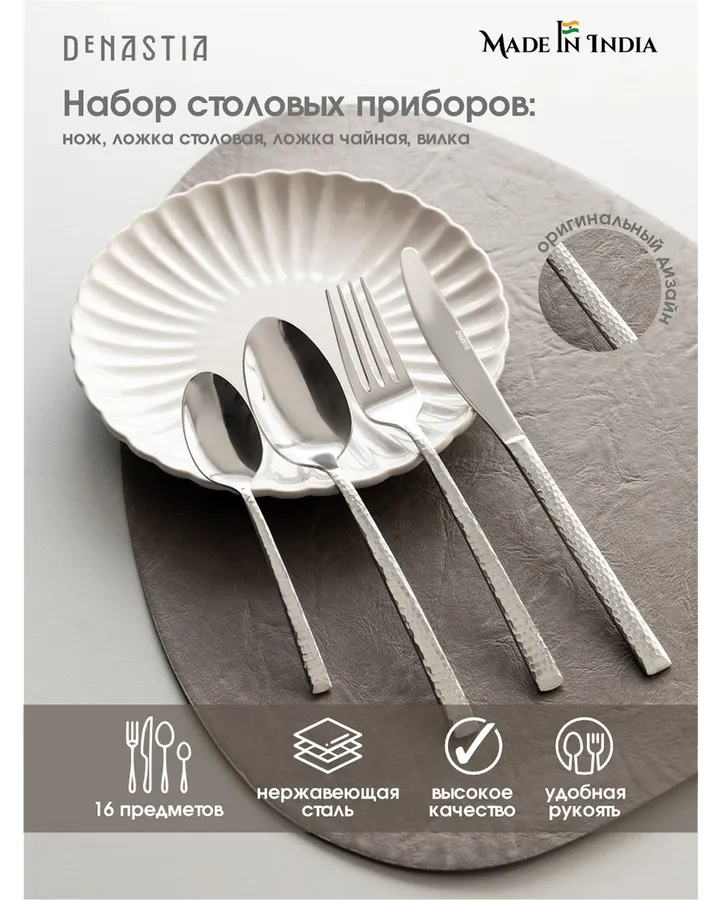 Набор столовых приборов DeNASTIA на четыре персоны Рассвет нержавеющая сталь CU00013