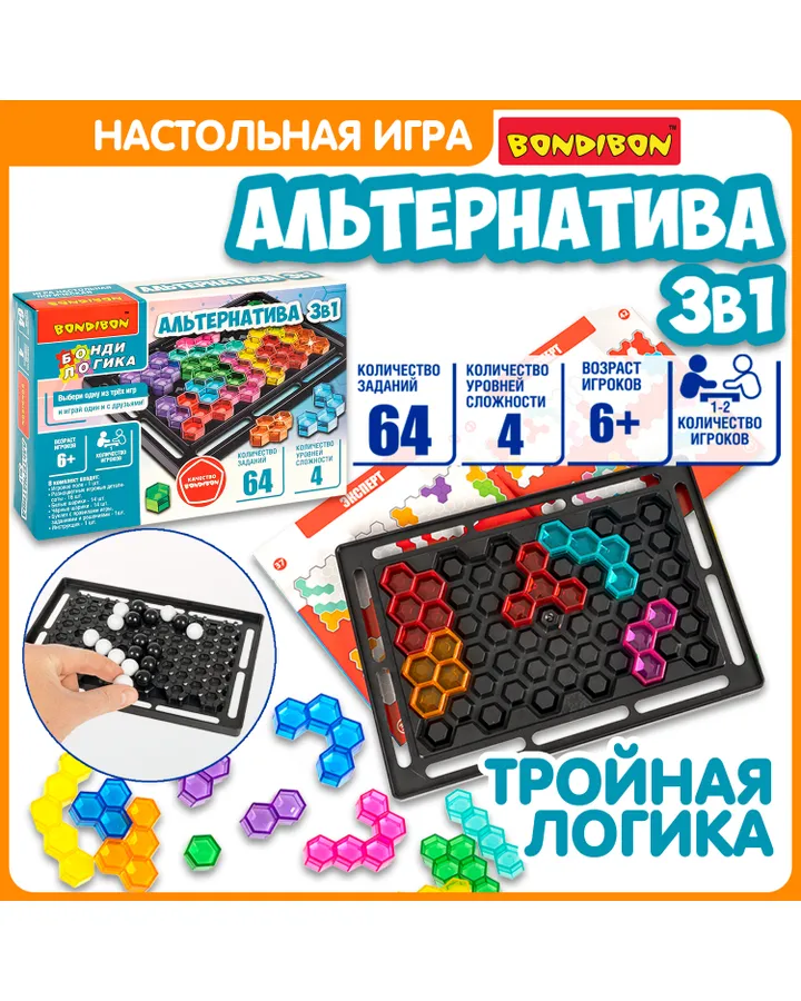 Настольная игра Bondibon логическая АЛЬТЕРНАТИВА 3в1