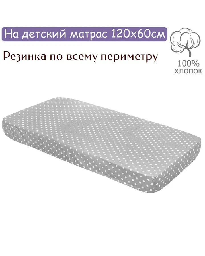 Простыня Mrs.Stretch Mr.Jersy Какао/молочный со звездами 60 x 120 см на резинке, для круглой кроватиОтличная простыня. Хлопок плотный.