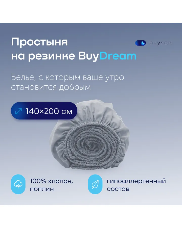 Простыня buyson BuyDream 160 x 200 см на резинке
