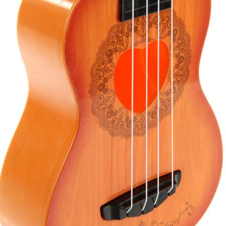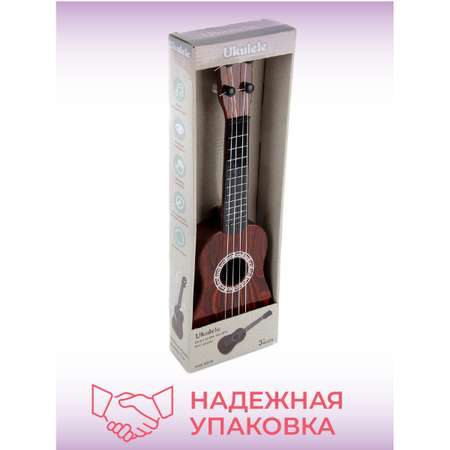 Игрушка яркая и привлекательная, вызывает интерес у малыша.Звук мягкий, струны не травмируют пальцы. Простота игры позволяет быстро освоить первые аккорды и мелодии.Хороший вариант для знакомства ребенка с инструментом!