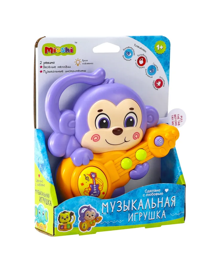 Игрушка музыкальная Mioshi Музыкальная игрушка пианино, гитараЯ очень довольна игрушкой. Она очень прочная и выдерживает интенсивное использование. Гитара, кроме того, что светится и издает звуки инструментов, также имеет заранее записанные мелодии, которые помогают развить музыкальные навыки ребенка