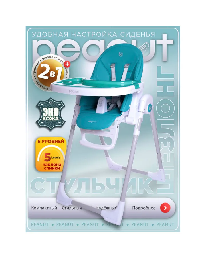 Стульчик для кормления BabyCare Peanut бирюзовый