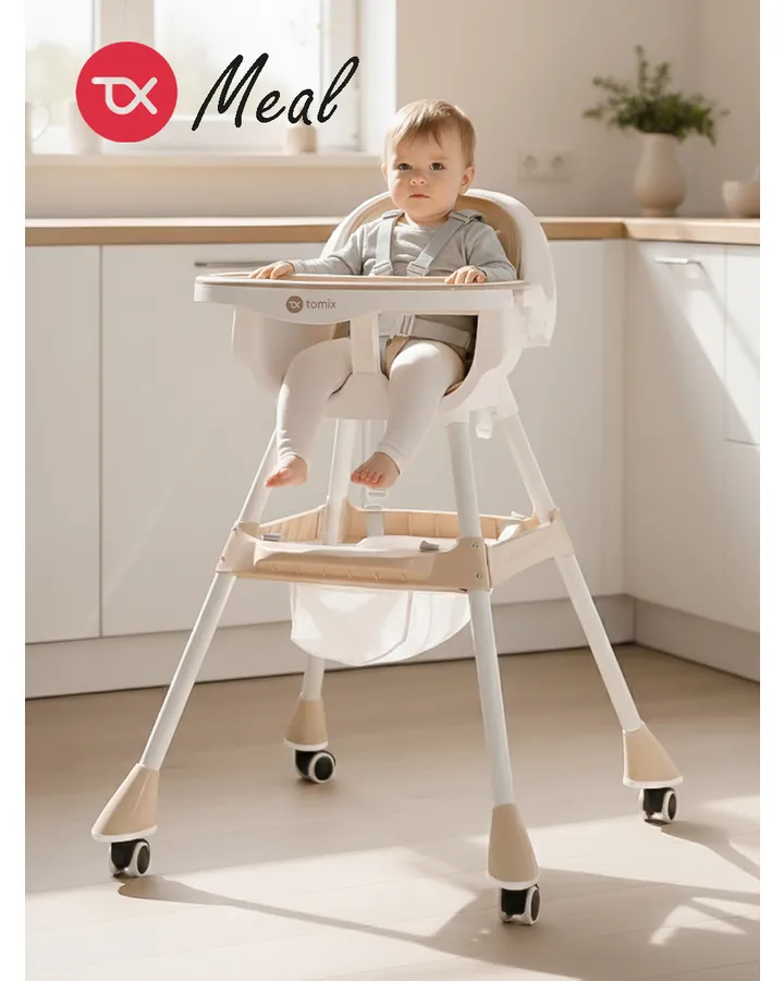 Стульчик для кормления Tomix Malvin бежевыйПришёл ровно в срок.Единственное, не хватает чего-то мягенького под попу.Стульчик нравится. Удобный, малышу комфортно, хорошо ездит.