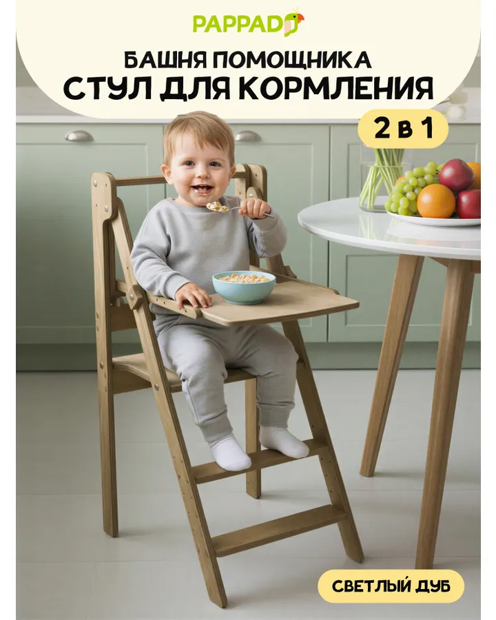 Стульчик для кормления PAPPADO Башня помощника коричневый