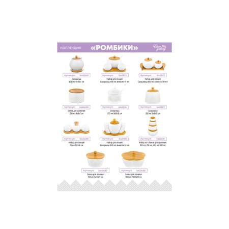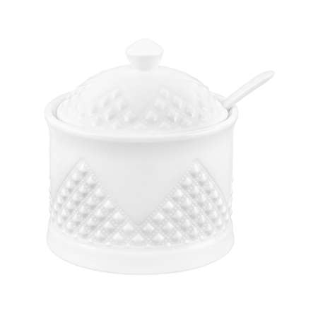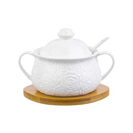 Сахарница Elan Gallery 620 мл Белое кружево на деревянной подставке