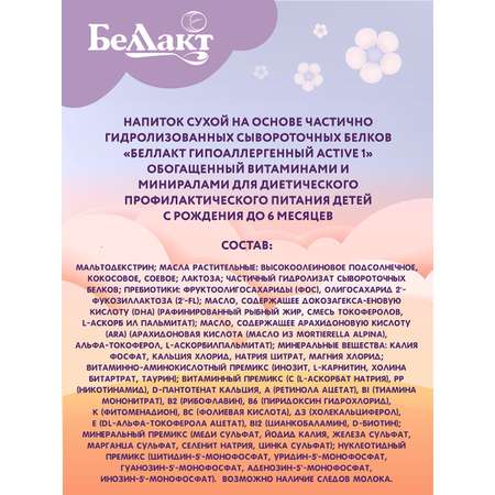 Беллакт обогащен важными питательными веществами, такими как белки, углеводы, жиры, витамины и минералы, необходимыми для здорового роста и развития младенцев. Он также содержит пребиотики и пробиотики, которые способствуют здоровой микрофлоре кишечника и укрепляют иммунную систему.