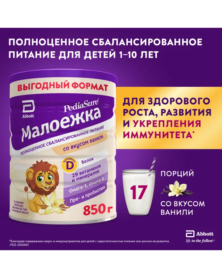 5Питание детское сбалансированное PediaSure Малоежка ваниль 850г с 12месяцевОтличная смесь , ребенок ест с удовольствием, спасение для малоежек 👍