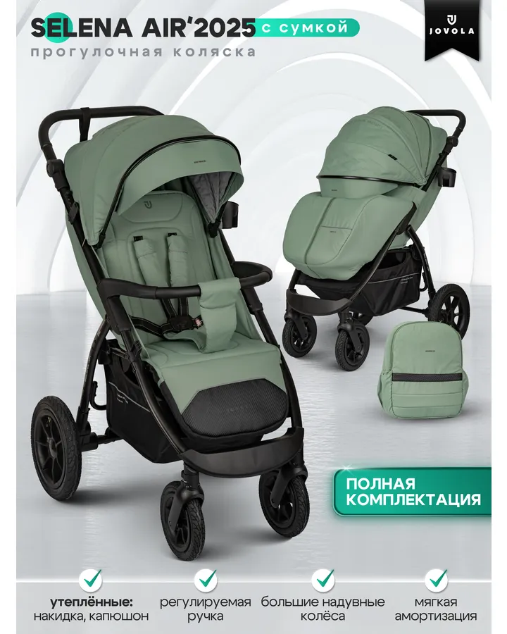 Коляска прогулочная JOVOLA SELENA Air 2025 с сумкой зеленый