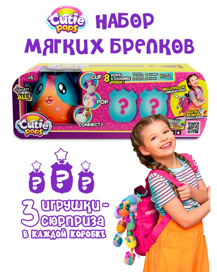 Брелок EOLO Плюшевый CutiePops сюрприз 3шт