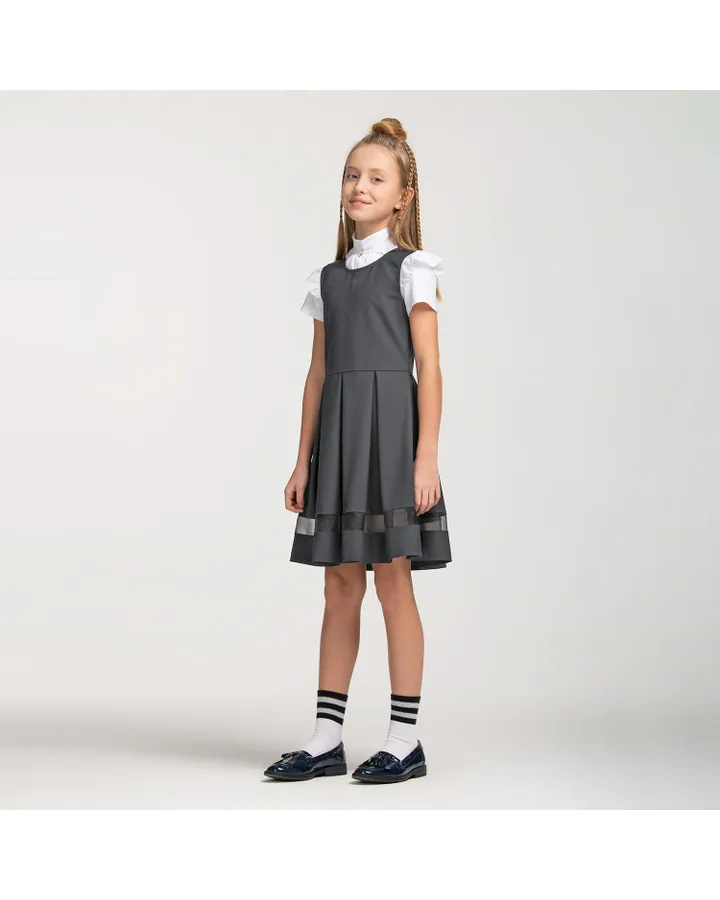 5Сарафан SmenaХороший сарафан на смену. Взяли за 1300. Рост дочери 140см, худенькая. Ткань нормальная, нитки не торчат.