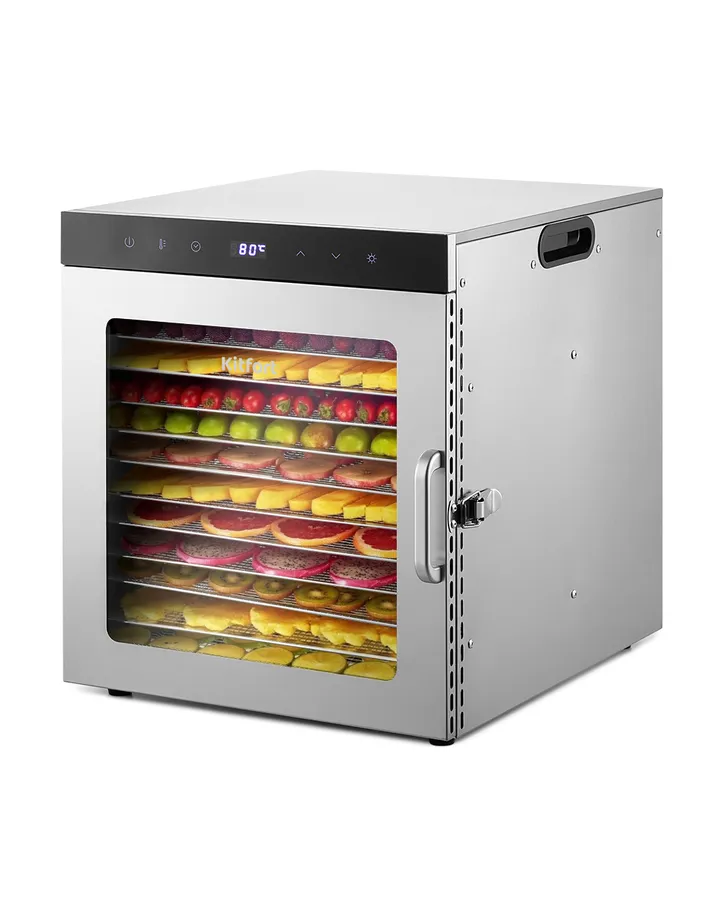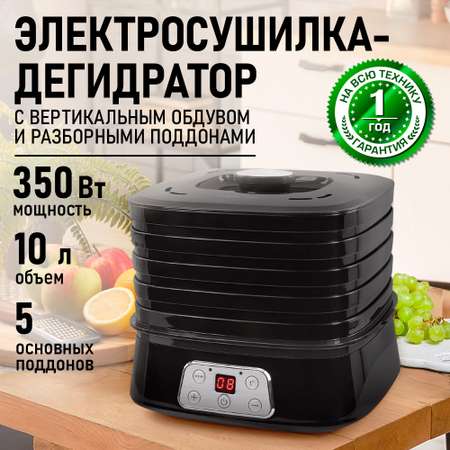 Вместительная, 8 поддонов,, удобное регулирование Температуры и времени сушки.