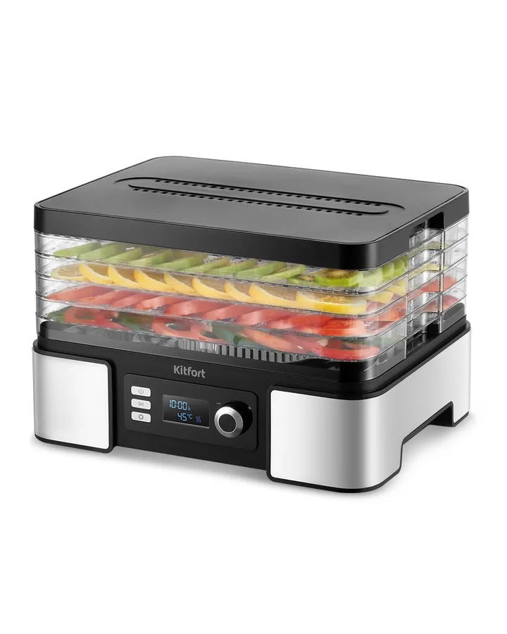 Вместительная, 8 поддонов,, удобное регулирование Температуры и времени сушки.
