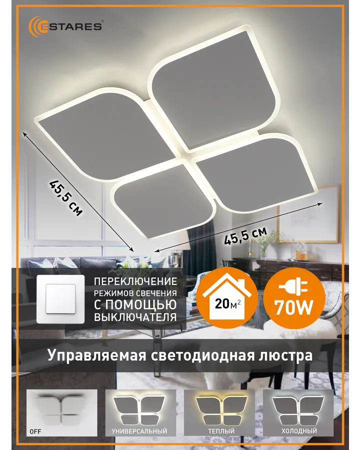 5Люстра Estares TERESAМаленькая,но комнату 20м.кв. освещает хорошо, удобно переключать и пультом и выключателем
