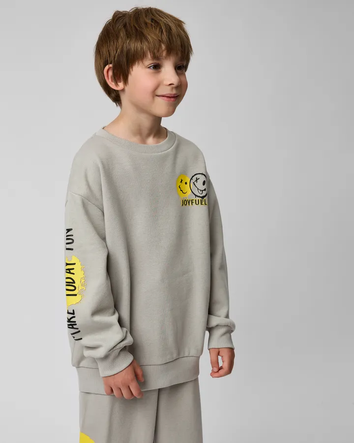 5Свитшот Futurinoинтересный цвет, не просто серый. немного большемерит(как на модели). ребенок ростом 106см