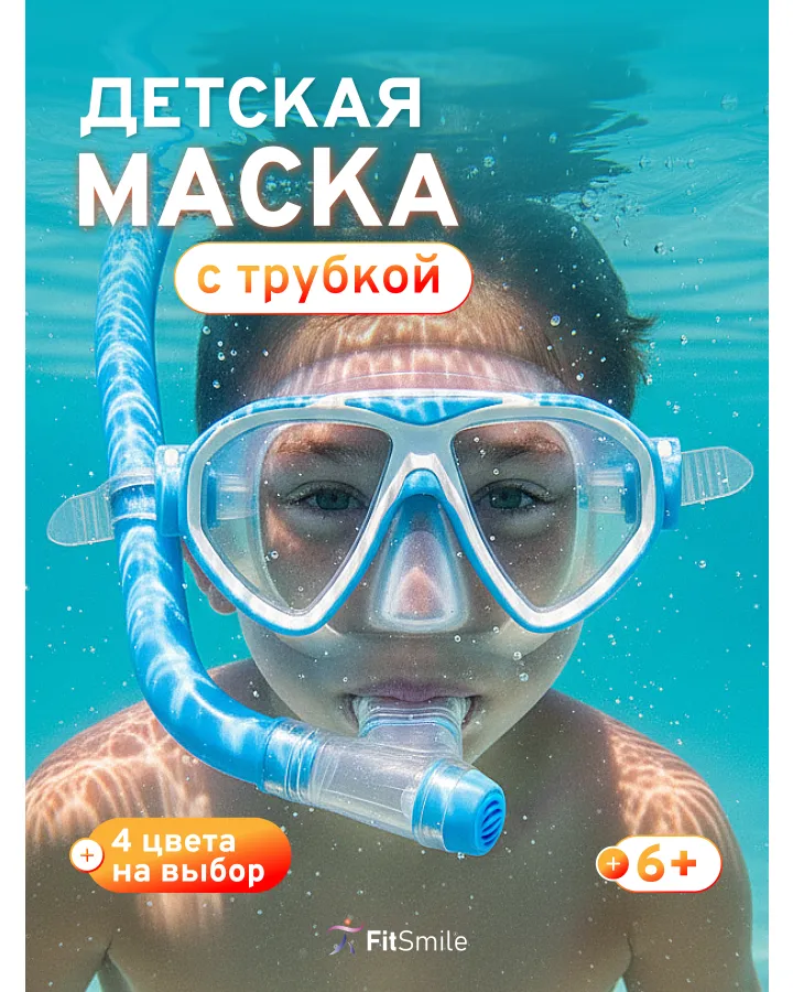 Маска для плавания FitSmile с трубкой голубой цвет