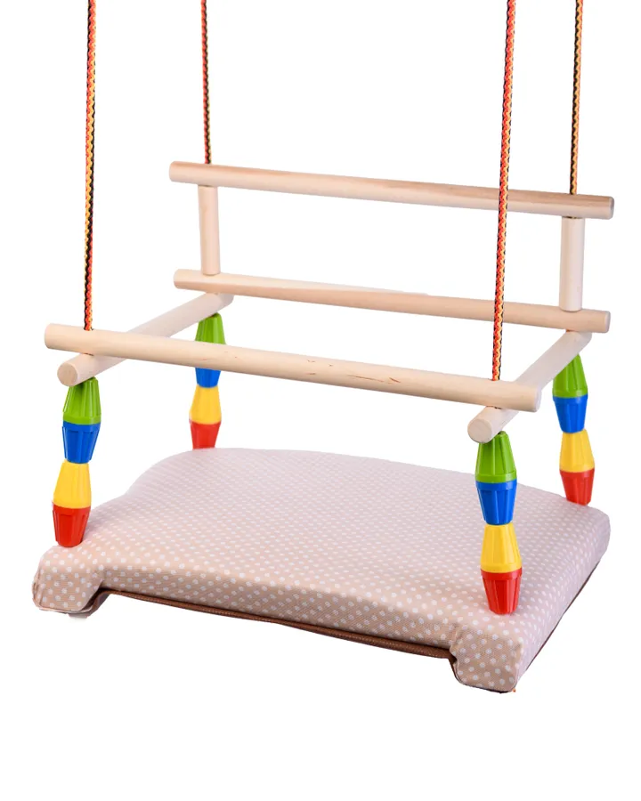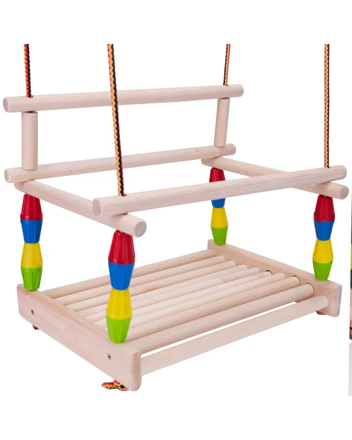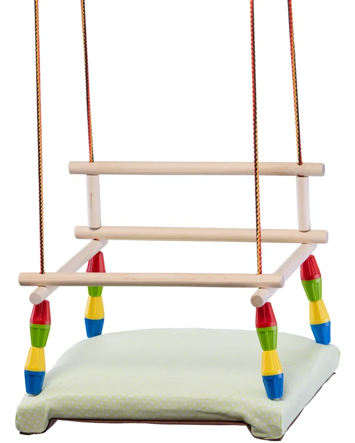 5Качели Нижегородская игрушкаОбработаны хорошо, без заноз. Ничем не красили. Веревку нарастили альпинистским тросом, к которому крепим, пристегивпя на карабины из хозмага.