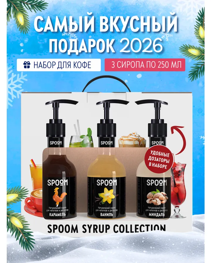 Набор сиропов SPOOM Французская карамель Ваниль Шоколад для кофе 3 шт по 250 мл и 3 помпы