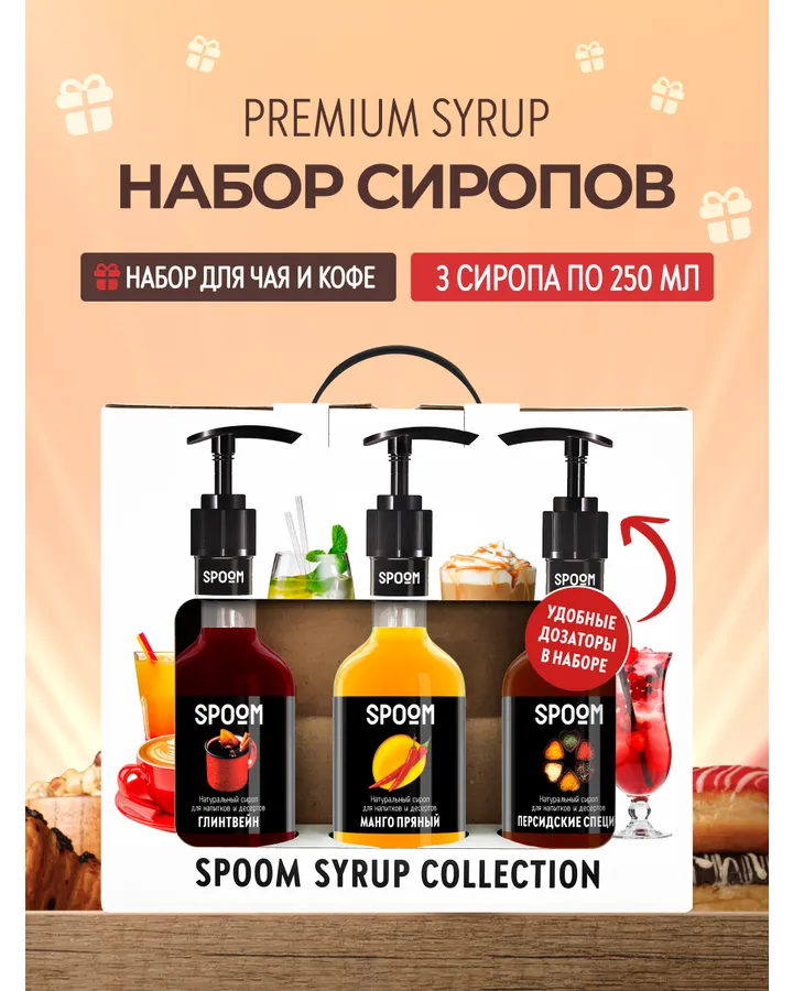 Набор сиропов SPOOM Глинтвейн Манго пряный Персидские специи для кофе 3шт 250мл + 3 дозатора