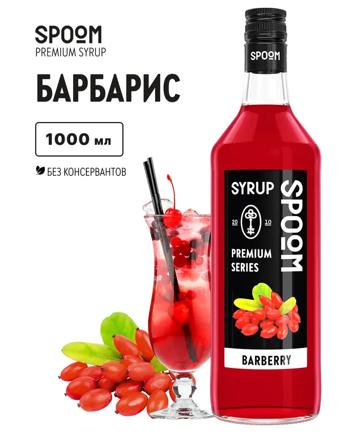 Сироп SPOOM Барбарис 1л для коктейлей лимонадов и десертов