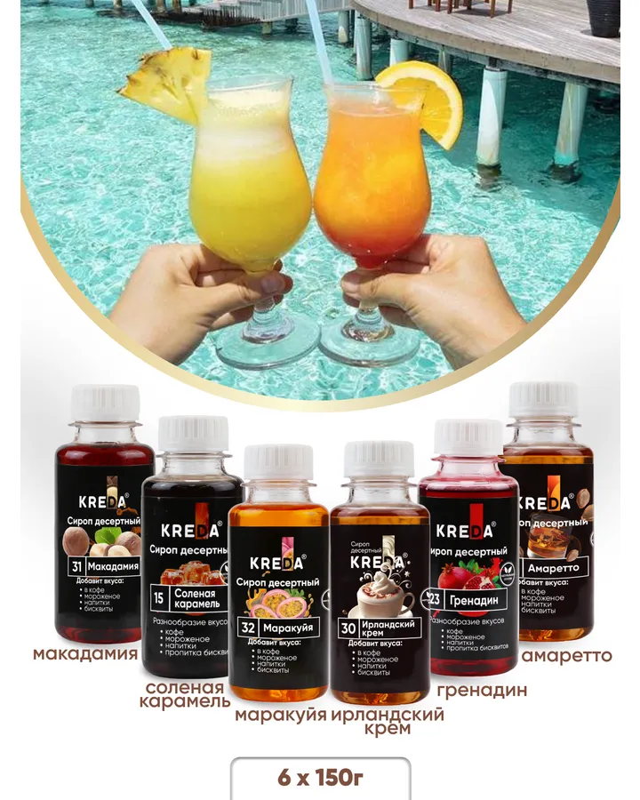 Сироп KREDA макадамия, соленая карамель, маракуйя, ирландский крем, гренадин, амаретто