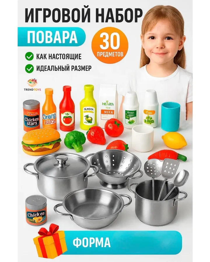 Купили сыну набор посыды и не пожалели ни секунды! Классные материалы, красивые продукты, ребенок счастлив безмерно. Каждый вечер теперь превращаем кухню в игровую зону. Покупайте смело, не прогадаете!